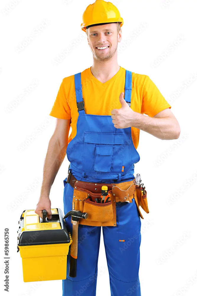 Portrait of young builder isolated on white
