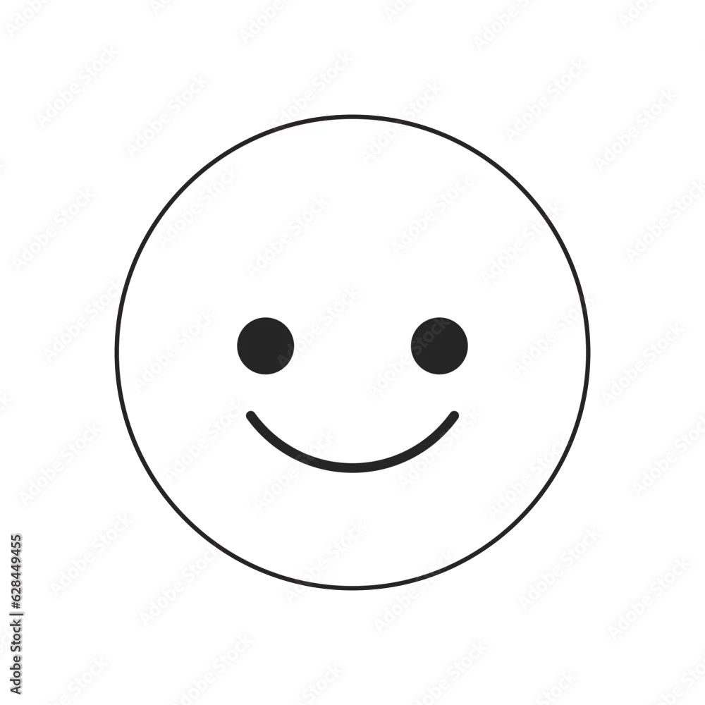 Positive smiling emoticon flat monochrome isolated vector object. Editable black and white line art drawing. Simple outline spot illustration for web graphic ...