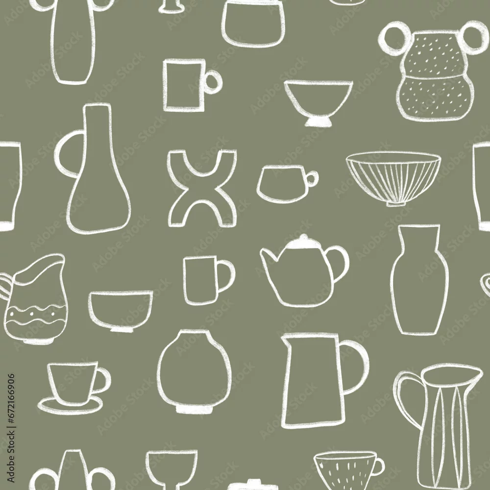 Pottery class and ceramics. Doodle seamless pattern. Design for fashion , fabric, textile, wallpaper, wrapping and all print