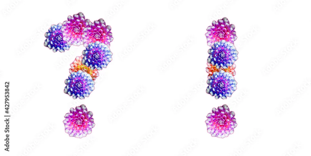 Question mark and exclamation mark made of peony flowers