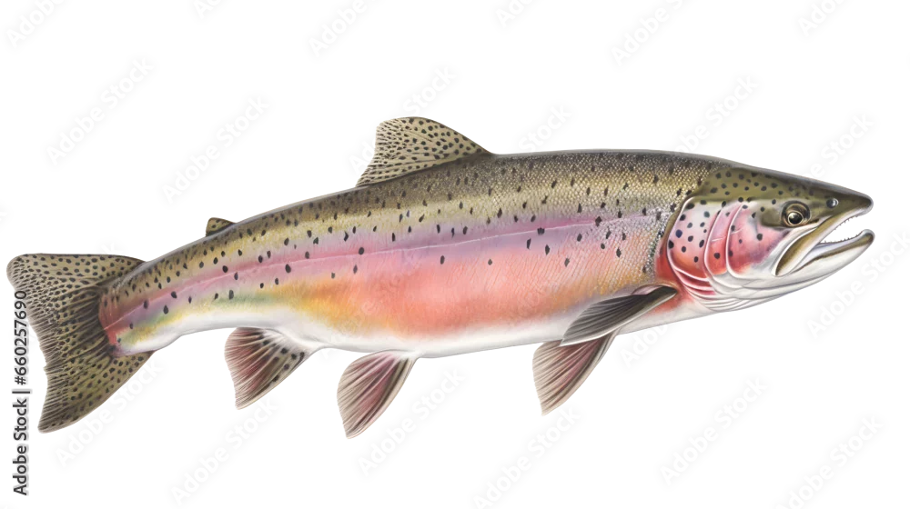 Rainbow Trout, realistic, side view, illustration, transparent png, no background, generative ai