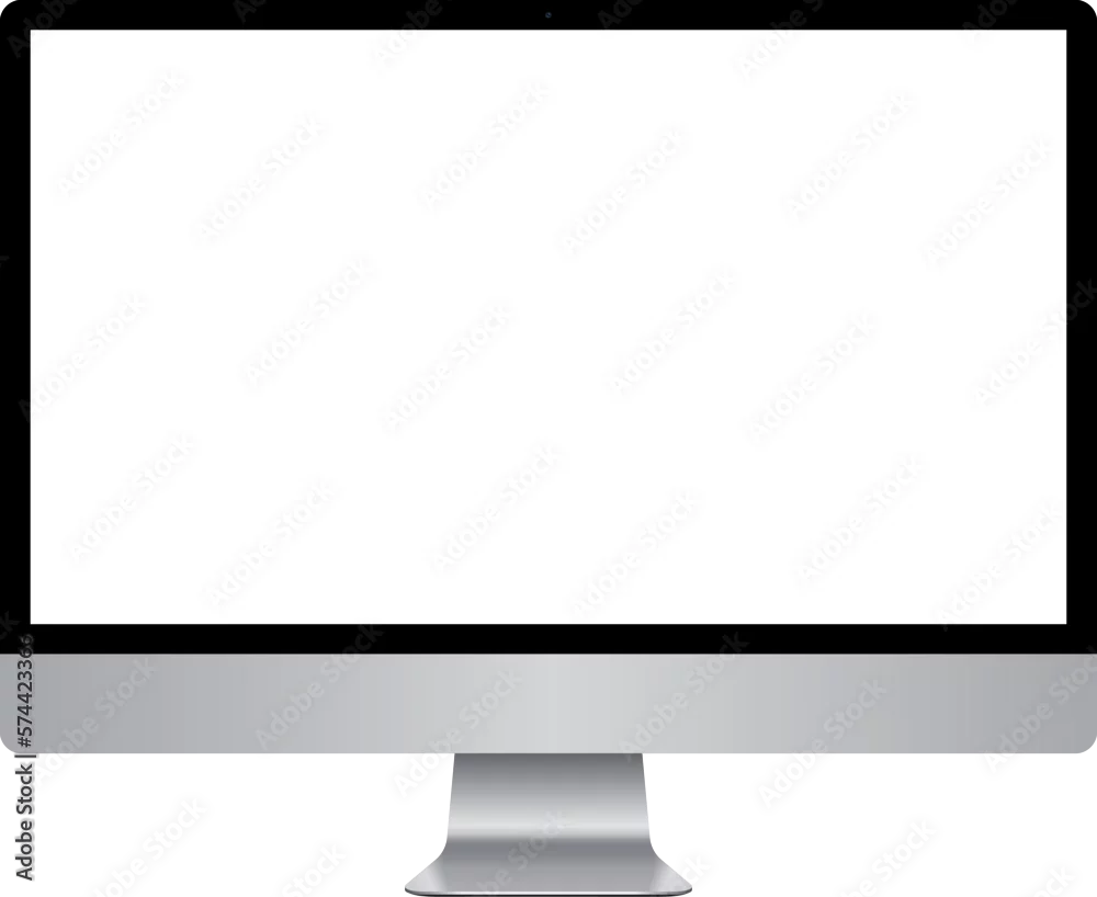 Realistic Apple Mac iMac computer vector illustration set collection png. Monitor screen on transparent background.