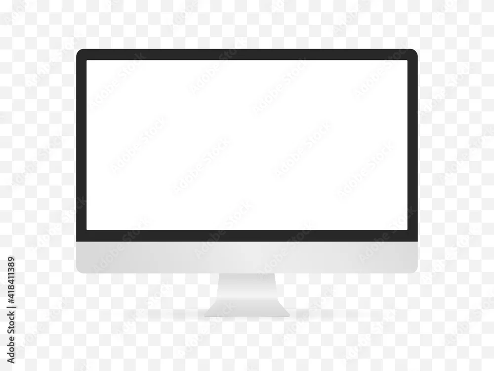 Realistic monoblock monitor isolated template. Empty white screen with black edging digital mockup device with slim body modern lcd touch vector styl ...