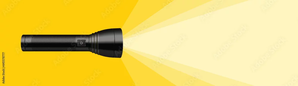realistic torch and light beam illustration. An illustration of an electric bulb and light striking forward.