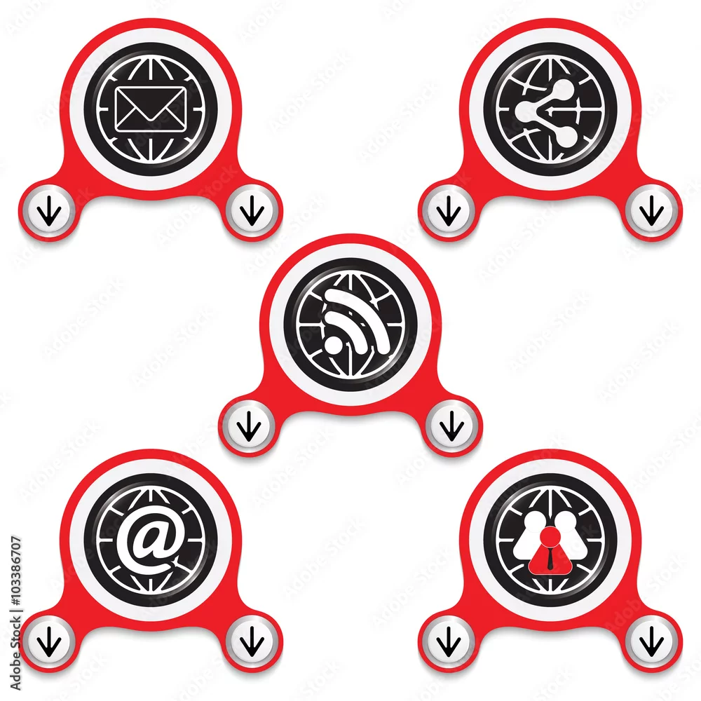 Red abstract icons and different symbols