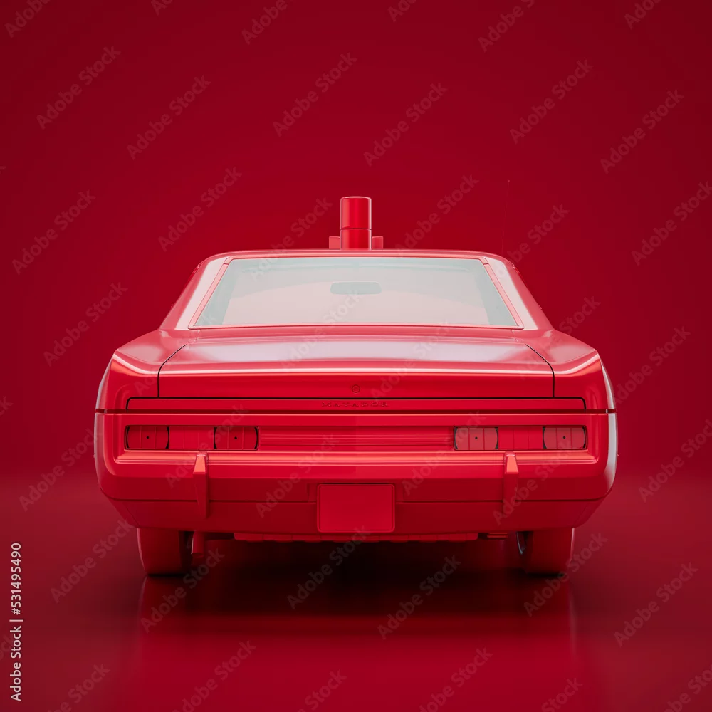Red AMC Matador Police CAR 1972. Monochrome Single Color Red Car From Back View, 3D Rendering