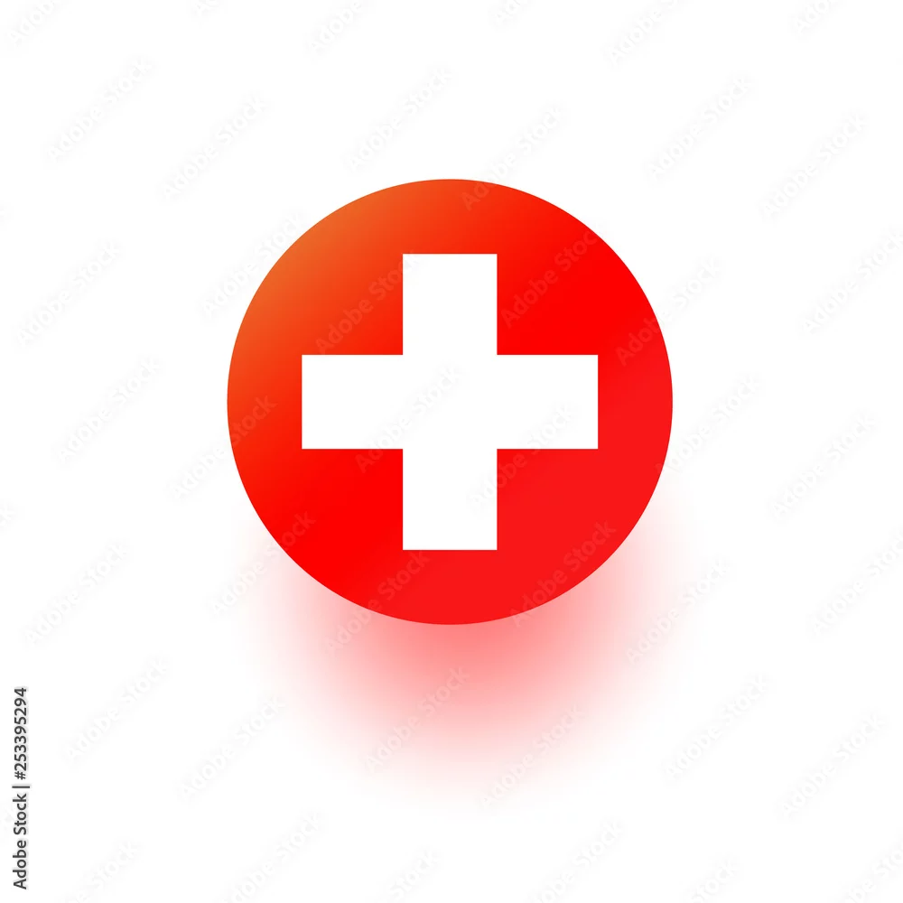 Red Cross vector icon, hospital sign. Medical health first aid symbol isolated on vhite. Modern gradient design.