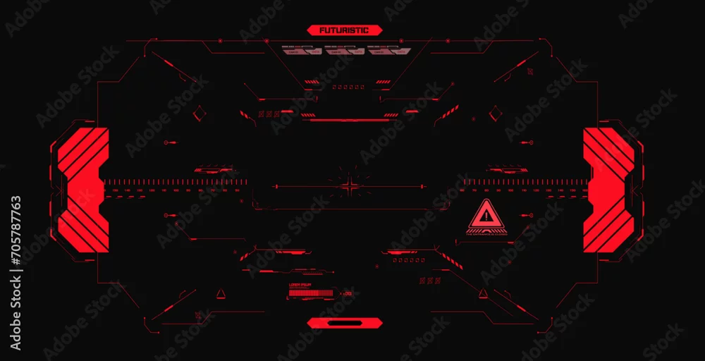 Red HUD UI FUI design in futuristic style. Futuristic Red and Black HUD Interface Design Elements for High-Tech Display. Modern mockup sci fi cockpit heads ...