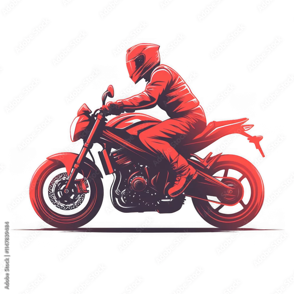 Red icon of Motorcycle isolated on a transparent background Minimalist flat icon, vector logo style sign clipart on a no background png
