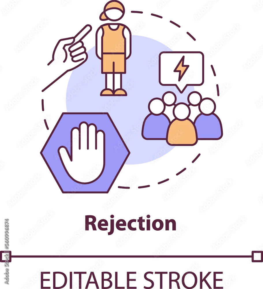 Rejection concept icon. Traumatic experience. LGBTQI mental health risk factor abstract idea thin line illustration. Isolated outline drawing. Editable stroke. Arial, Myriad Pro-Bold fonts used