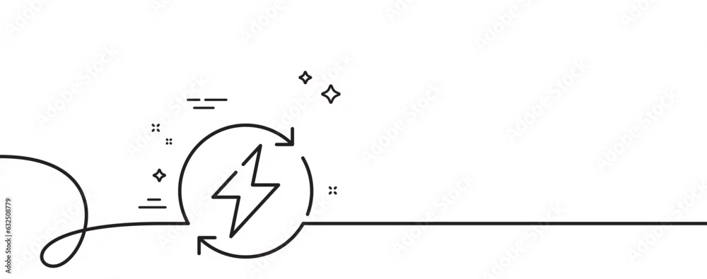 Renewable power line icon. Continuous one line with curl. Update electric energy sign. Lightning bolt symbol. Renewable power single outline ribbon. Loop curve pattern. Vector