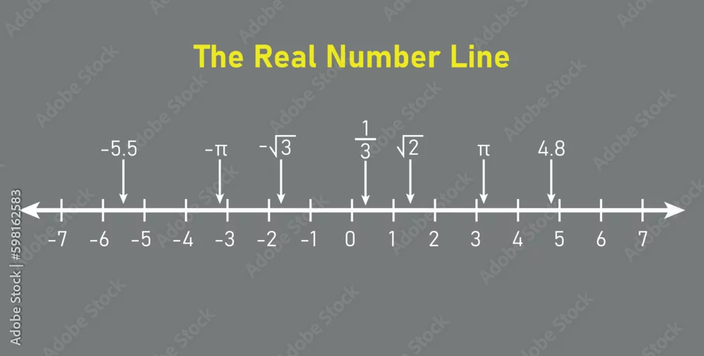 Representation of the real number line. Mathematics resources for teachers. Vector illustration isolated on white background.