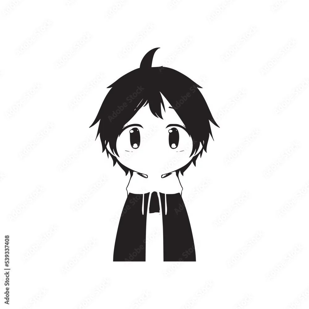 retro anime little boy in jacket. 90's anime style and hand drawn manga vector illustration. Contour drawing for avatars, coloring books, mobile games, ...