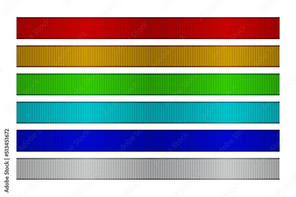 Ribbons set with grosgrain texture and different colors, 3d realistic fabric wide sampler