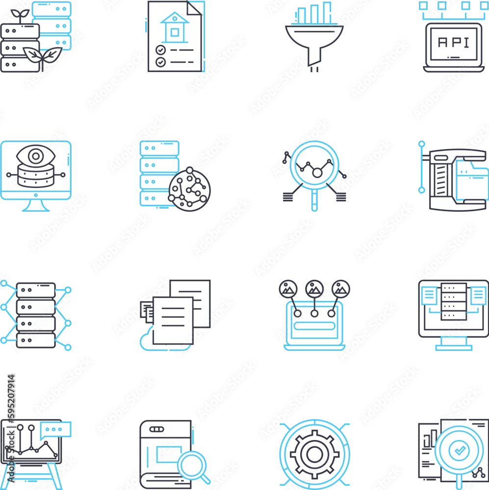 Risk assessment linear icons set. Probability, Uncertainty, Vulnerability, Threats, Consequences, Hazard, Assessment line vector and concept signs. Detection,Criticality,Security ...