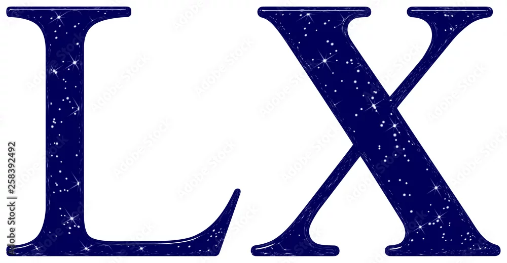 Roman numeral 60, sixty, six, star sky texture imitation, isolated on white background, 3d render