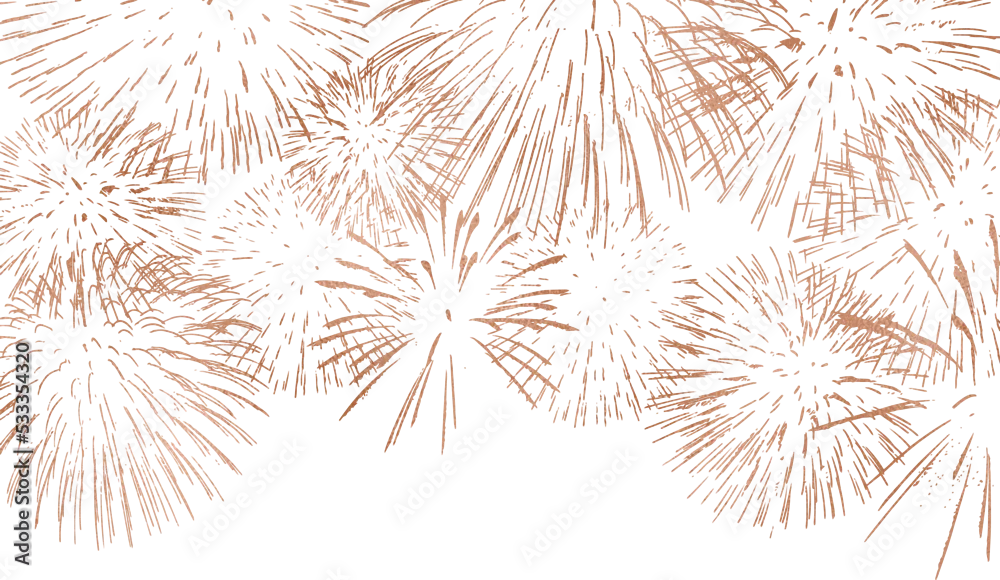 Rose gold firework, thin brush stroke lines. Isolated png illustration, transparent background. Design element for overlay, montage, collage. Happy new ...