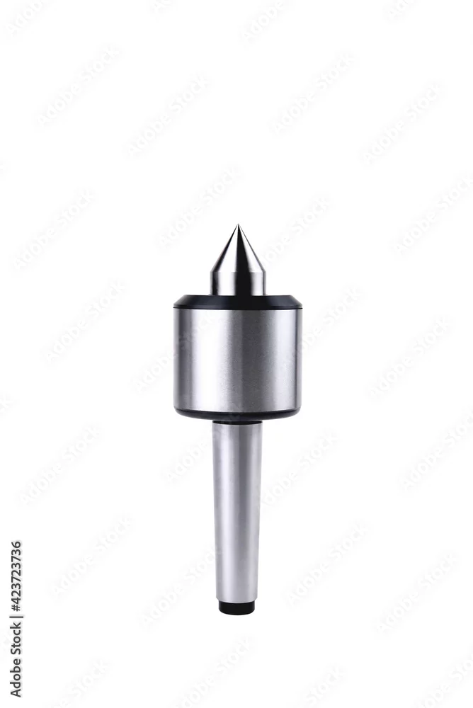 rotating lathe center for fixing workpieces in a lathe during metalworking on a white background