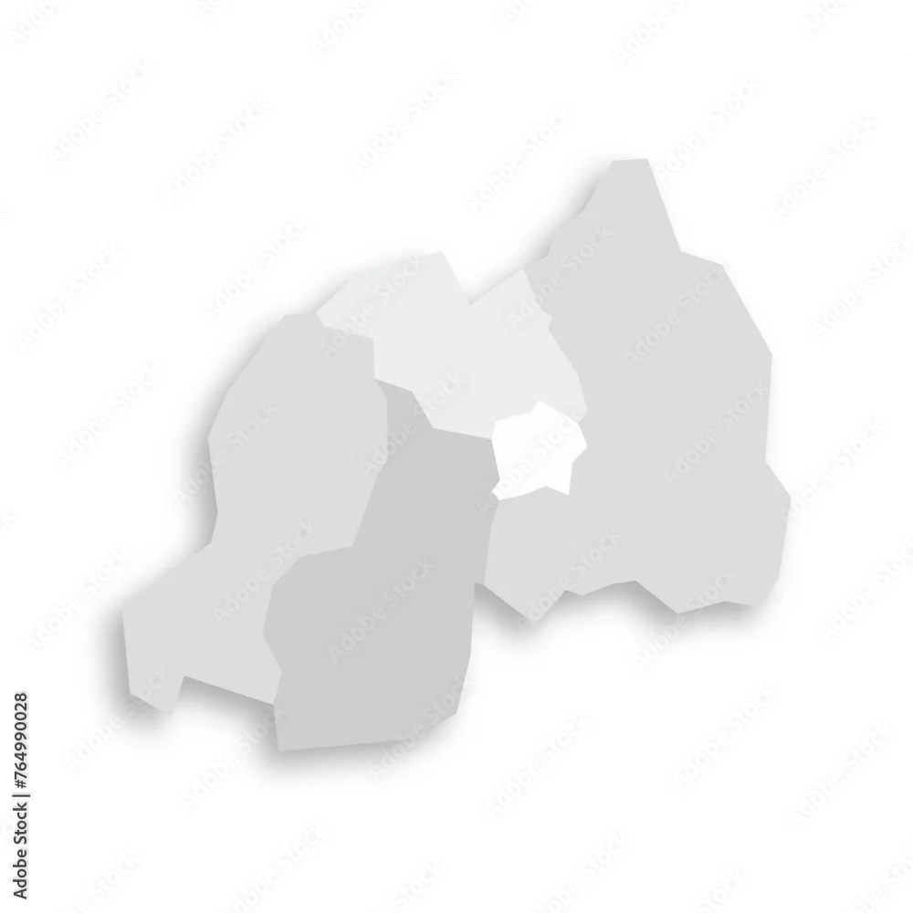 Rwanda political map of administrative divisions - provinces. Grey blank flat vector map with dropped shadow.