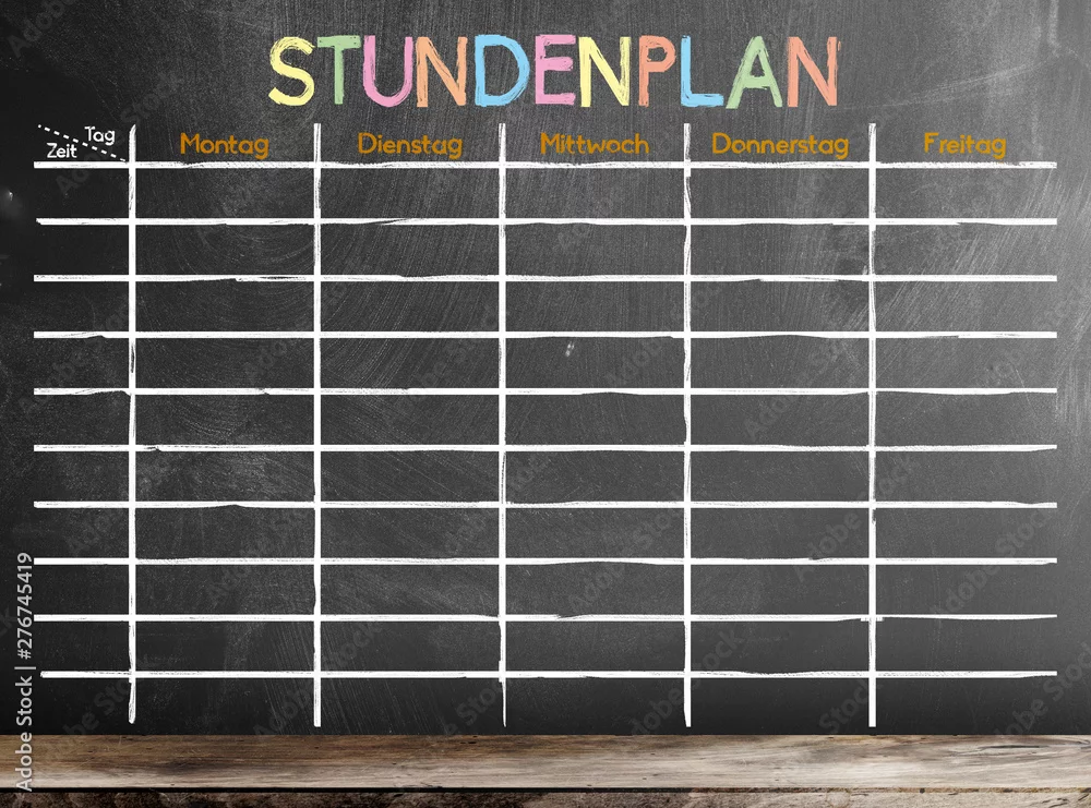 school timetable or class schedule with German word STUNDENPLAN template on blackboard