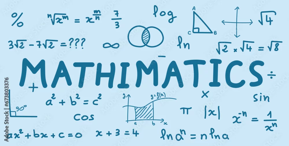 Scientific background with mathematical formulas. Mathematics equations and formula. Geometry background, formulas, shapes and graphics. Math resources for teachers and students. Vector illustration.