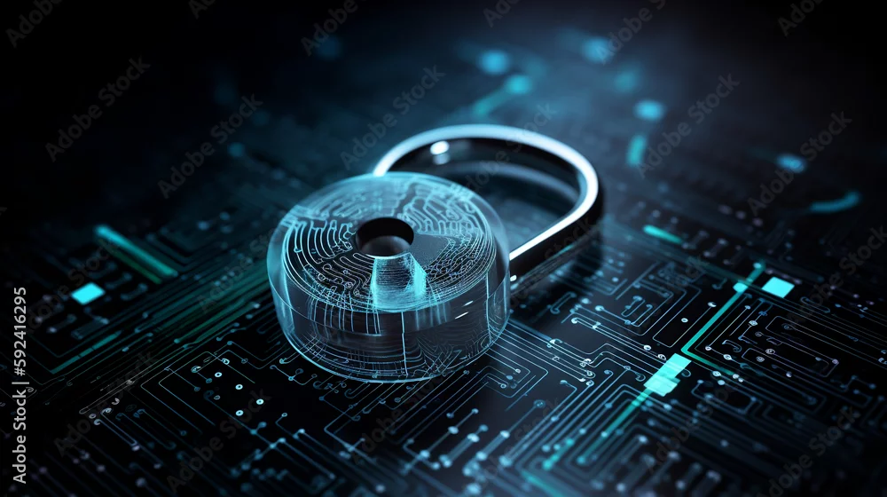 Security concept: Lock on digital screen, Generative Ai