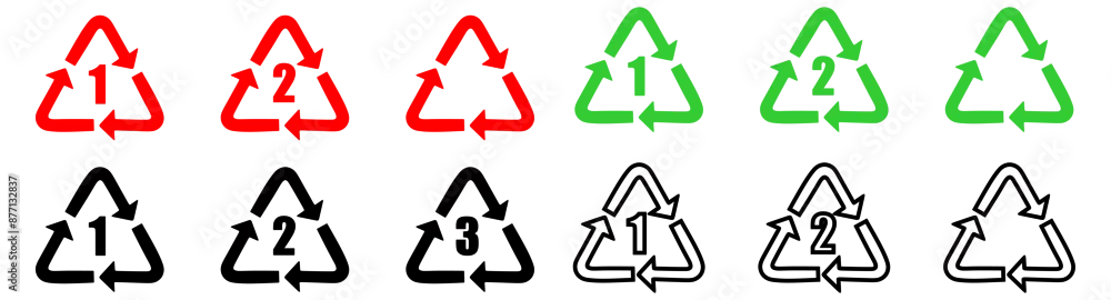 Set of badges for marking plastic. Industrial marking of plastic products. Code system signs for plastic recycling. Vector elements..