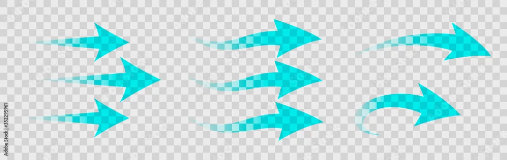 Set of blue arrow showing air flow isolated on transparent background - stock vector