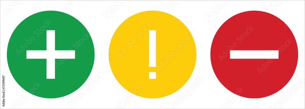 Set of flat square plus sign, exclamation point and minus sign icons, buttons isolated on a white background. vector file EPS 10