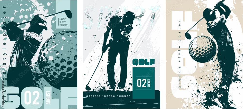 Set of posters dedicated to golf in Grunge silhouette style