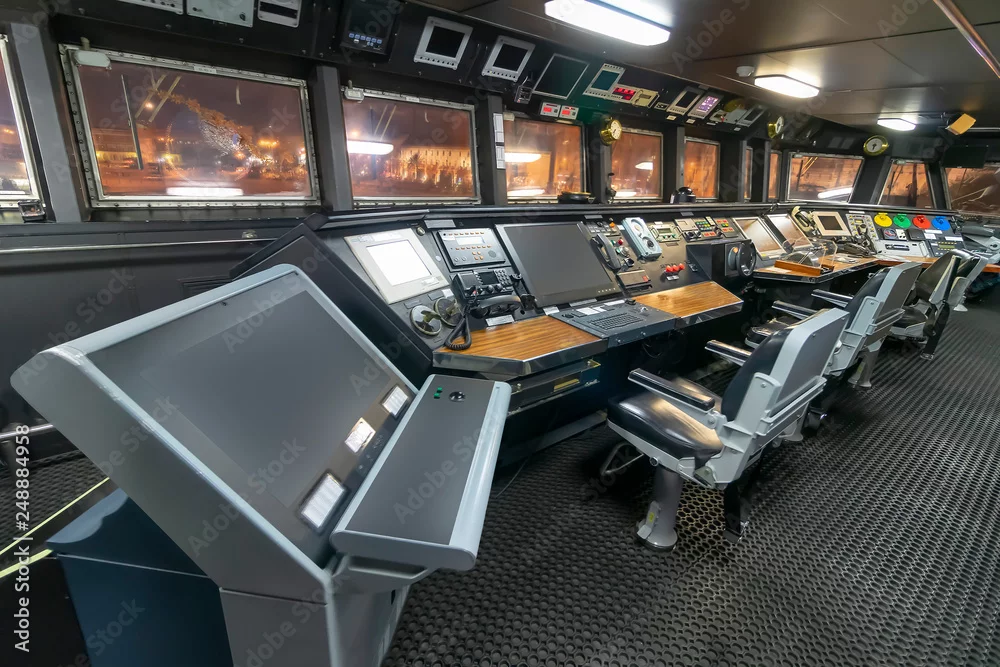 Ship control panel in captain's bridge