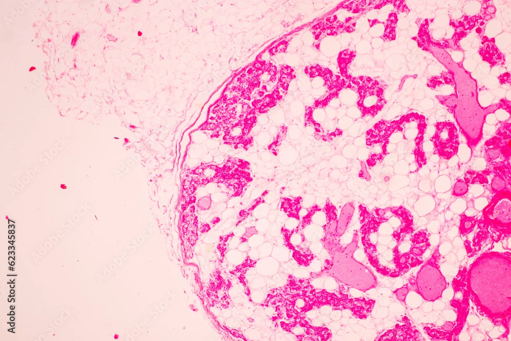 Showing Light micrograph of the Trachea, Thymus, Parathyroid gland and Tonsil human under the microscope for education in the laboratory.