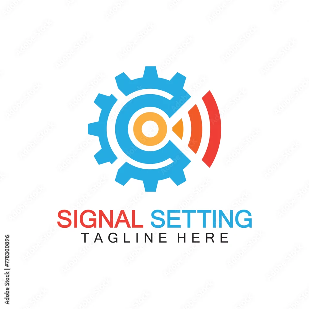 signal setting logo with gear and signal composition, logo for setting Connection, Signal, Internet, Telephone, Radio, Computer, Wifi, Communication, ...