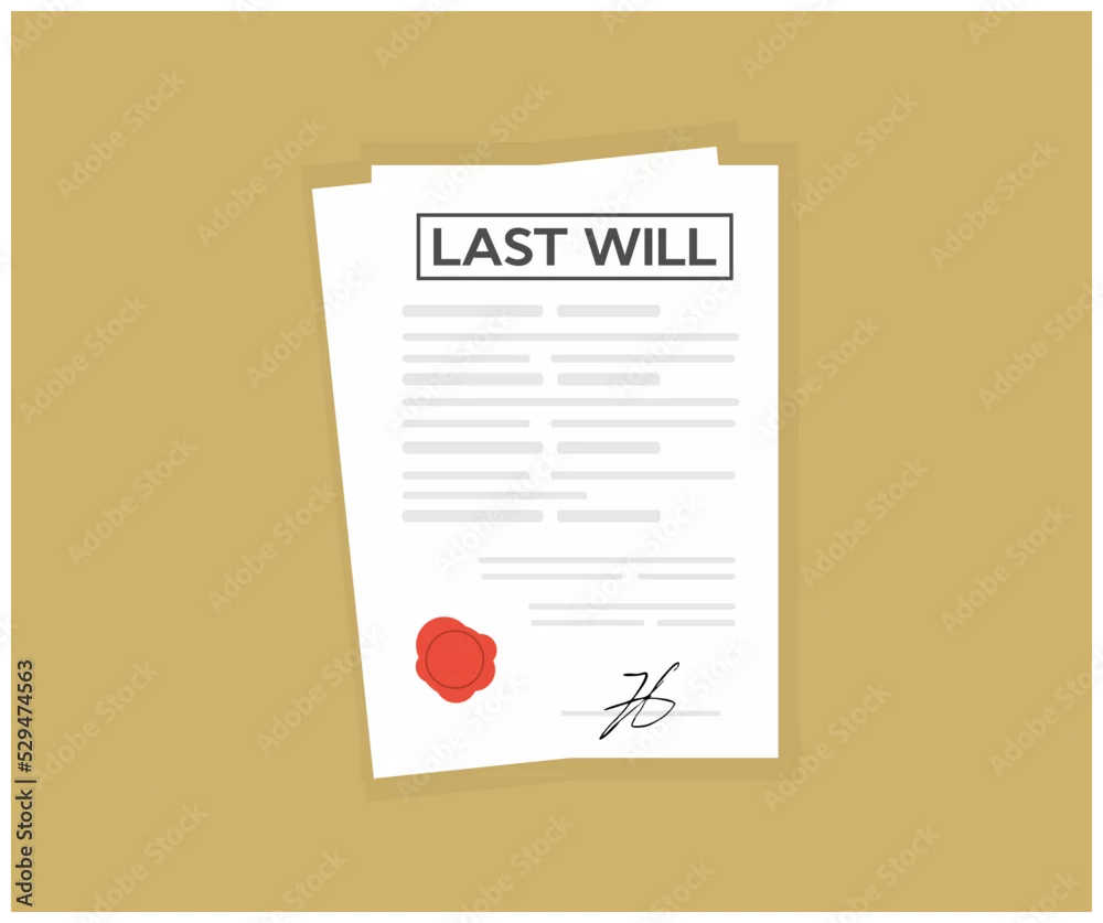 Signed last will. Document with stamp. Notarized testament logo design. Apostille and Notary services. Registration of the last will and testament vector ...