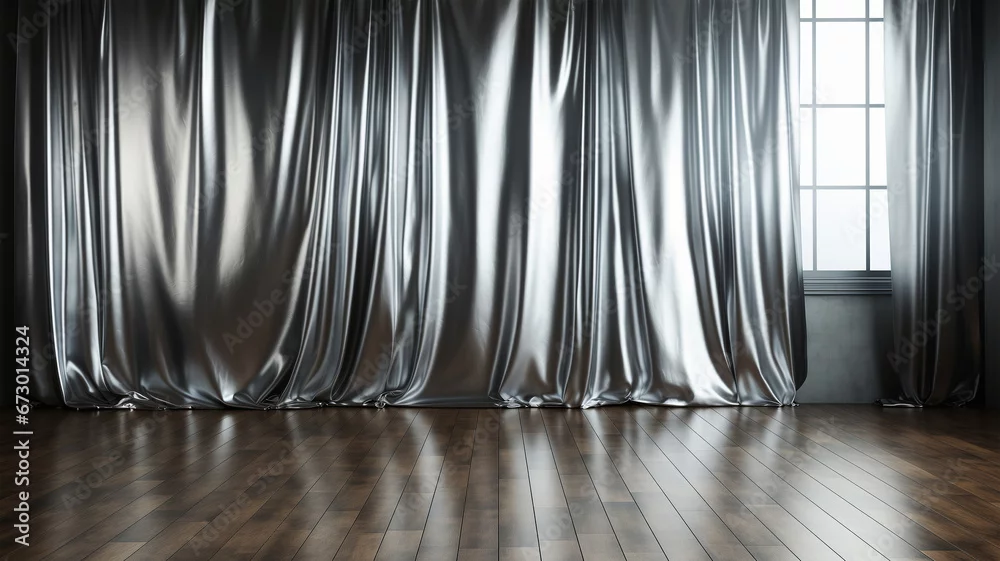 Silver gray curtain backdrop, metallic color for backdrop in studio photography room, luxury curtains for background or wallpaper, interior design