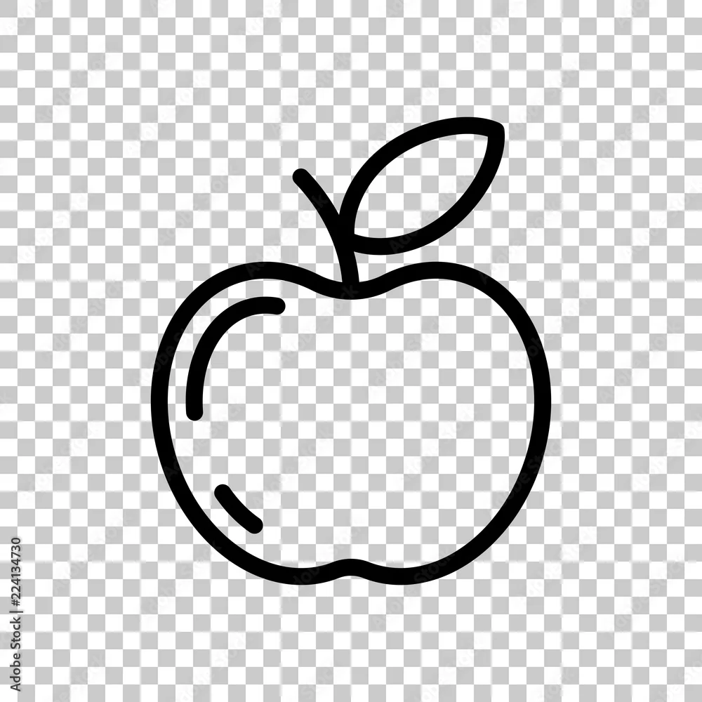 Simple apple icon. Outline silhouette. On transparent background