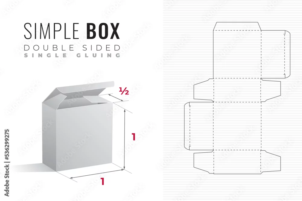 Simple Packaging Box Die Cut Double Sided Half Length Template with 3D Preview -Editable Blueprint Layout with Cutting and Scoring Lines on Background - Draw Graphic Design