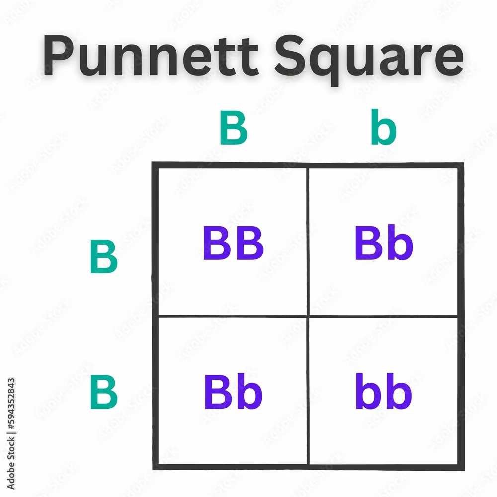 Simple version of the Punnett Square. Sometimes spelled as Punnets Square. Useful for Education