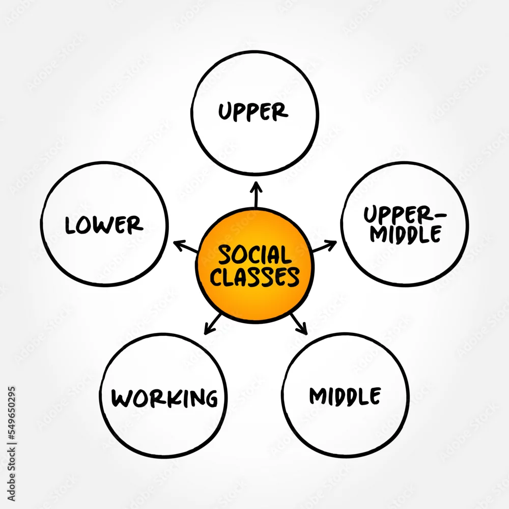 Social Classes (grouping of people into a set of hierarchical social categories) mind map text concept background