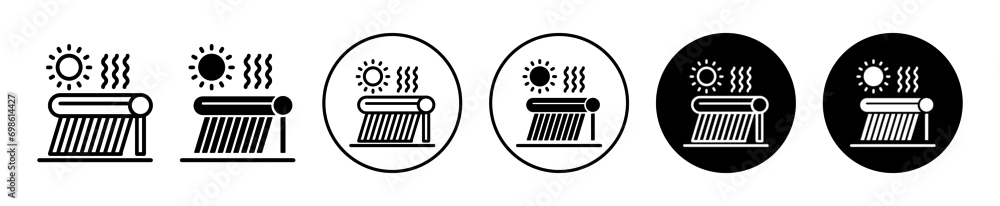 Solar Water Heater icon. environment friendly home or industrial roof top solar water heater panel with reservoir tank and heating tube pipe symbol vector sign. sunlight power absorbing solar heater