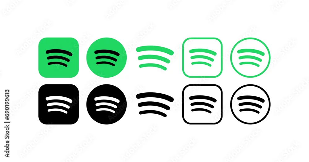 Spotify music platform logo icons. Spotify social network logos collection. Isolated music service logos icons. Editorial Spotify social media set. Vector ...