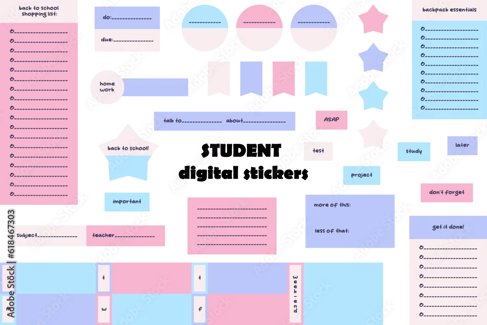 Student stickers. Back to school stickers. Ready to use digital stickers for bullet journaling or planning. Vector art.