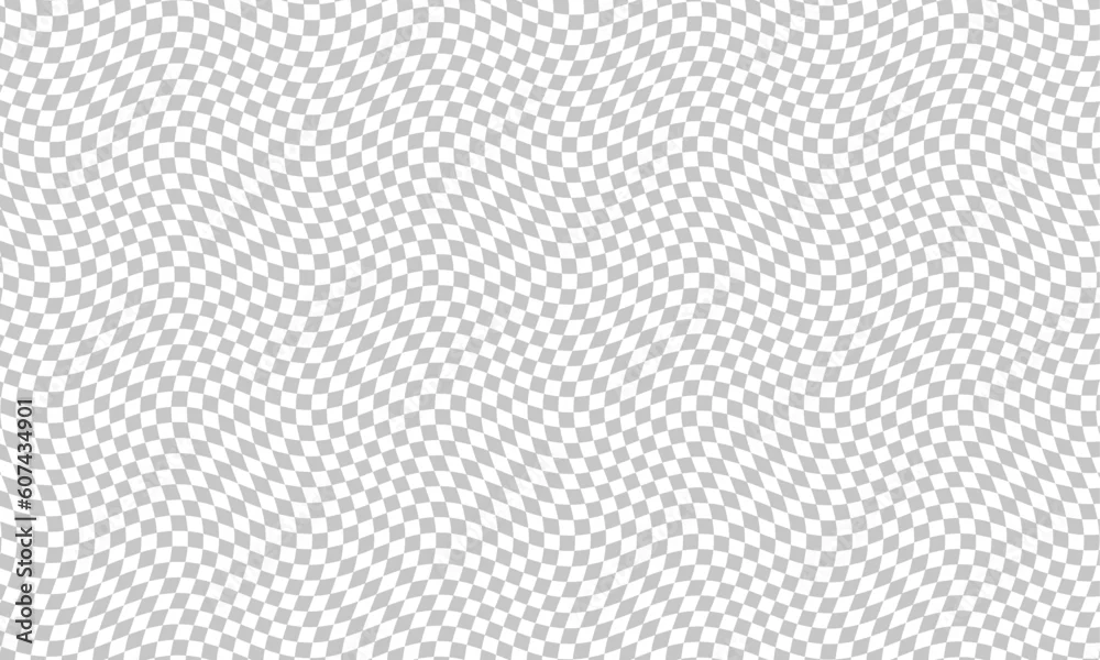 Stylish abstract wavy transparent photoshop background. Checker chess board square grid line gray and white vector background