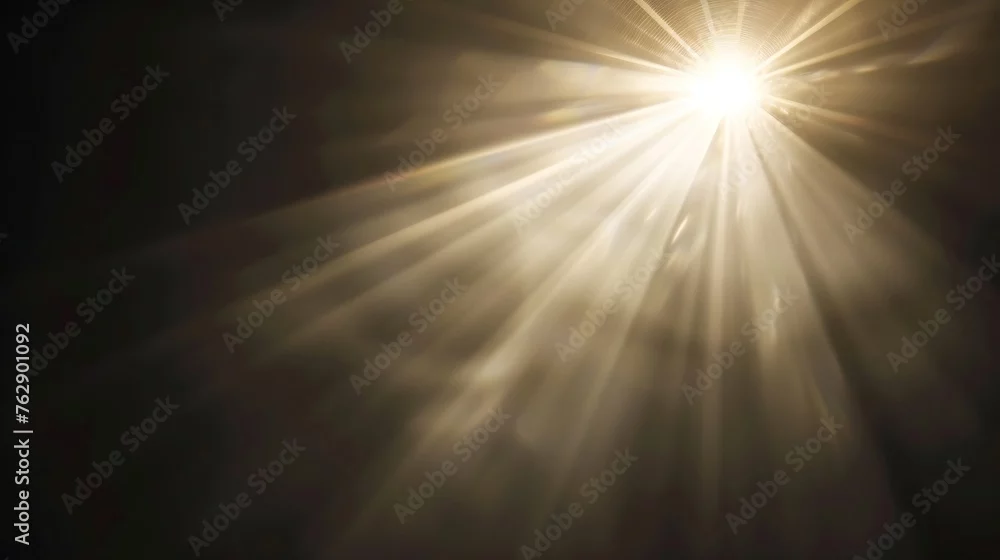 Sun Light Overlay Sun rays overlay Sun rays light isolated on black background for overlay design transparent sunlight special lens flash light effect front sun lens flash light of rad : Generative AI