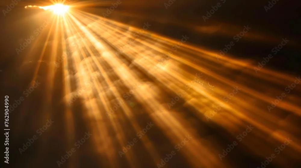 Sun Light Overlay Sun rays overlay Sun rays light isolated on black background for overlay design transparent sunlight special lens flash light effect front sun lens flash light of rad : Generative AI