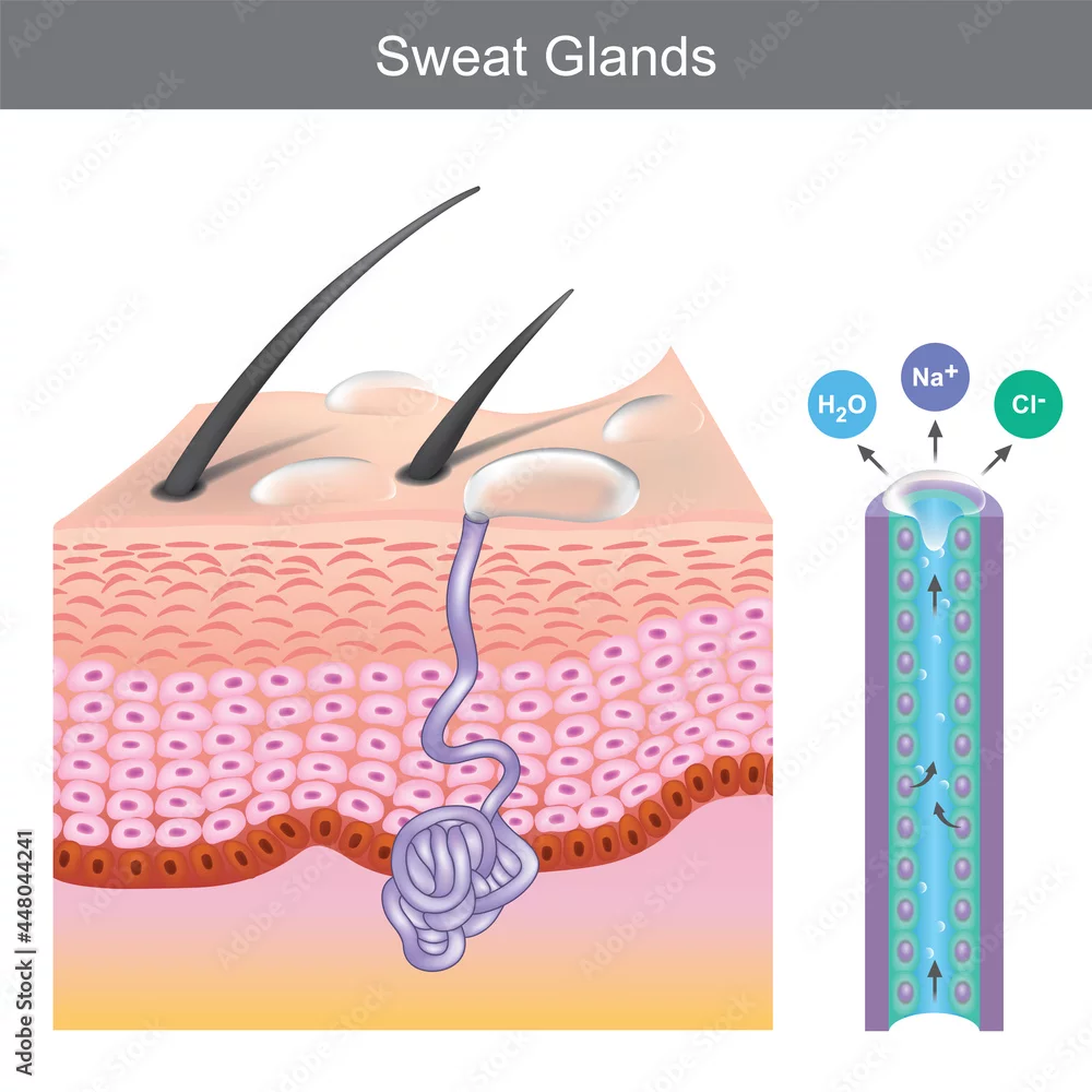 Sweat Glands. Illustration showing human sweat gland structure under skin layers..