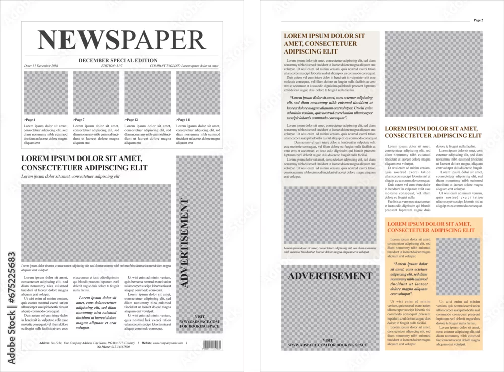Tabloid newspaper editorial layout design. Tabloid size with bleed.