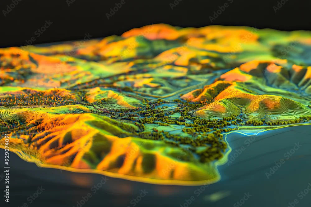 Technical aerial visual, 3D LiDAR GIS aerial map satellite scan model isolated, showing Temecula. Elevation, topography, render