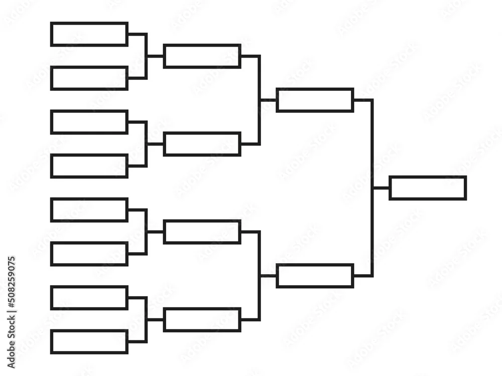 Templates of vector tournament brackets for 15 teams. Blank bracket template