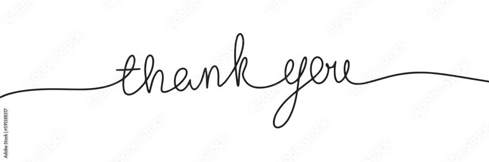 Thank you one line continuous. Handwriting line art lettering. Vector illustration.